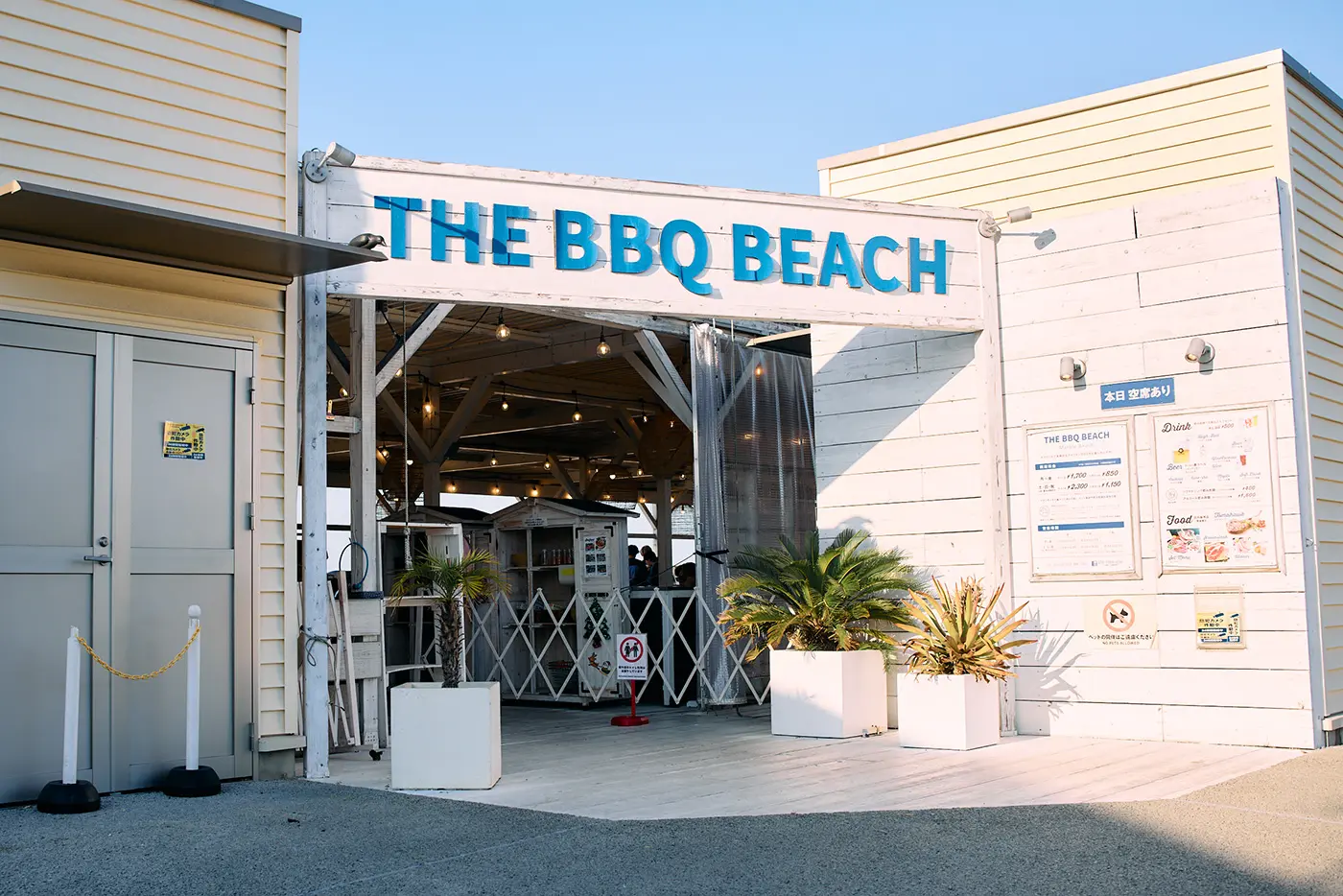 After the workout, it's time for the long-awaited lunch. We head to "THE BBQ BEACH in Marble Beach" in the community area. This is a luxurious space with sofas and gas grills, where you can enjoy a BBQ while looking out at the beach.