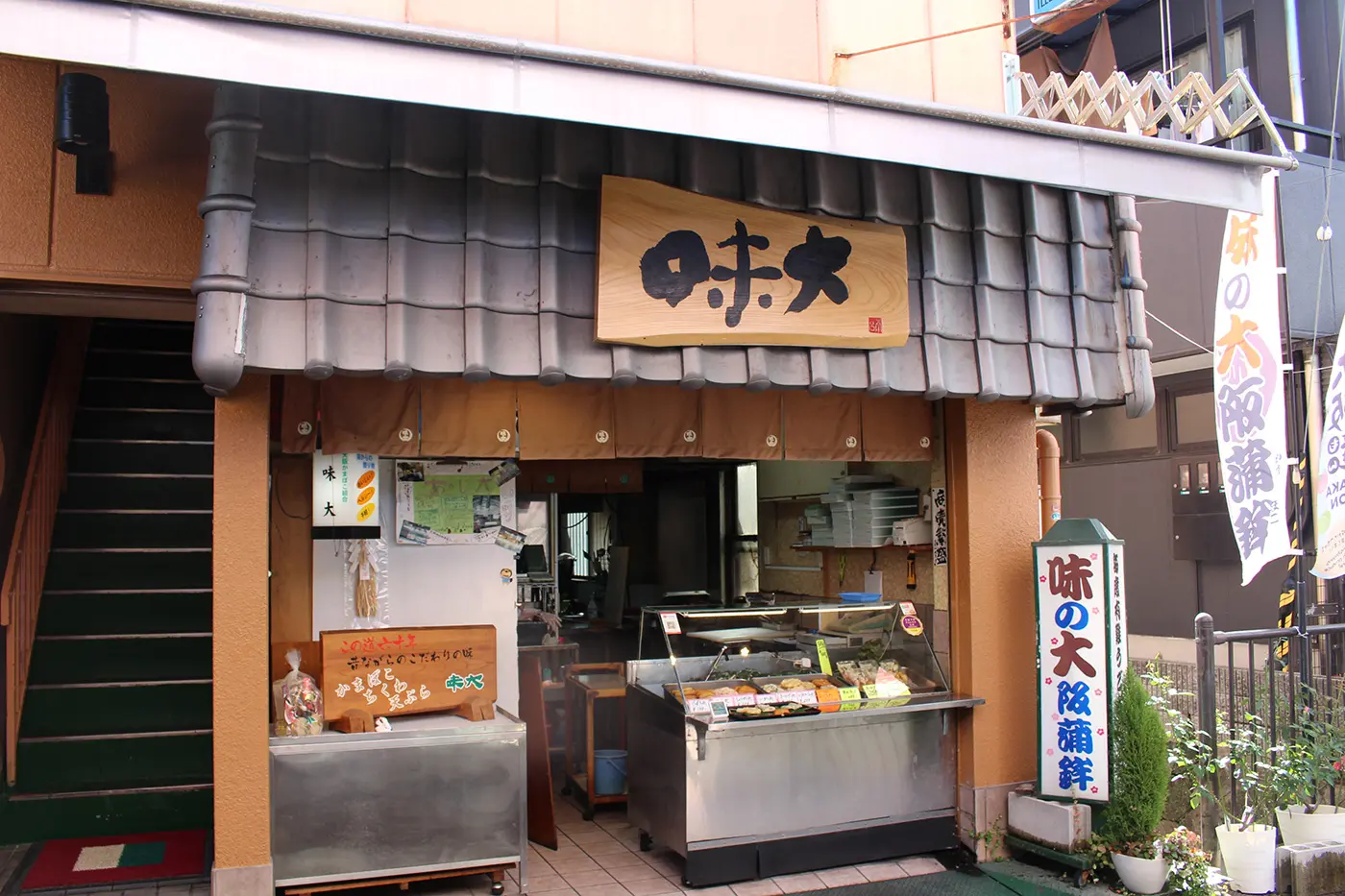 After a few minutes of leisurely walking down the single-street shopping street, we arrived at Ajidai Kamaboko, where Shinoda is the owner. Both of us were beaming with smiles as we stood in front of the display case lined with fish paste products made using the same methods since the shop was founded in 1970.