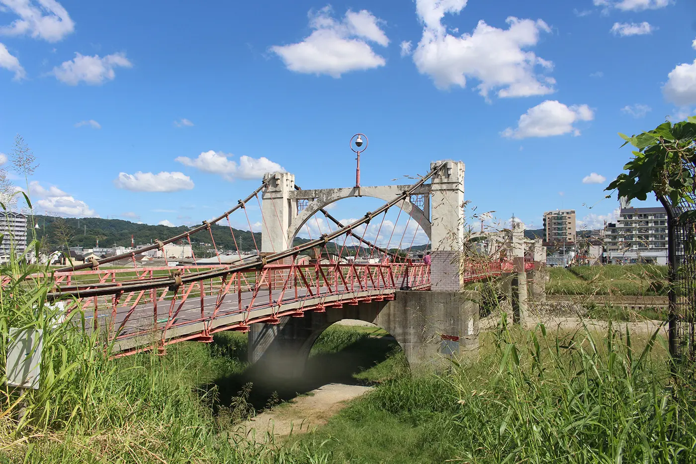 This suspension bridge was once the gateway to the now-defunct Tamateyama Amusement Park, and features a beautiful contrast between the white tower and red railings, reminiscent of the park's entrance gate. It is part of a route used by many local residents, but recently, many fans of the "National Treasure" have been seen on the bridge.