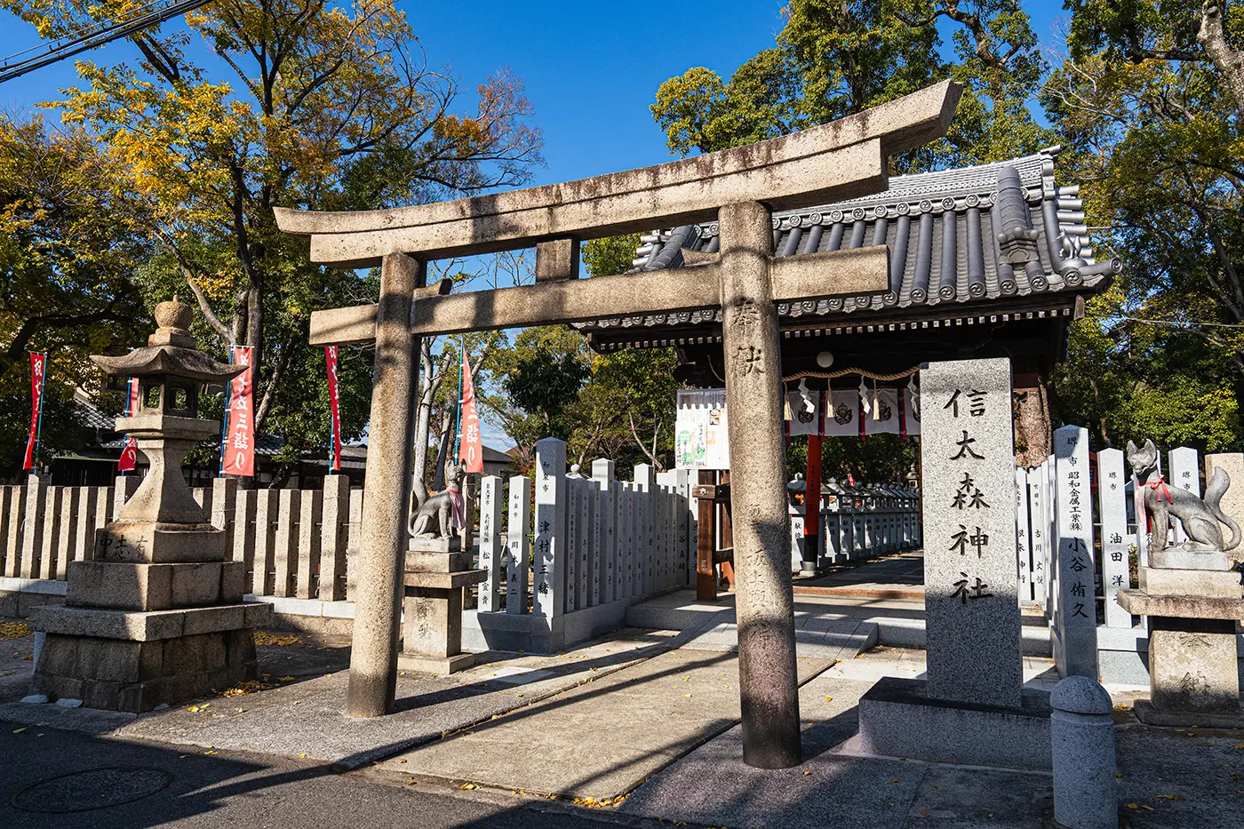旅のスタート地点はJR北信太駅。天王寺駅発の阪和線に乗り、約20分で到着します。今回は北信太から隣のJR信太山駅まで、一駅区間の周辺スポットを散策します。まずは、駅から5分ほど歩き、霊験あらたかなパワースポットを目指しました。