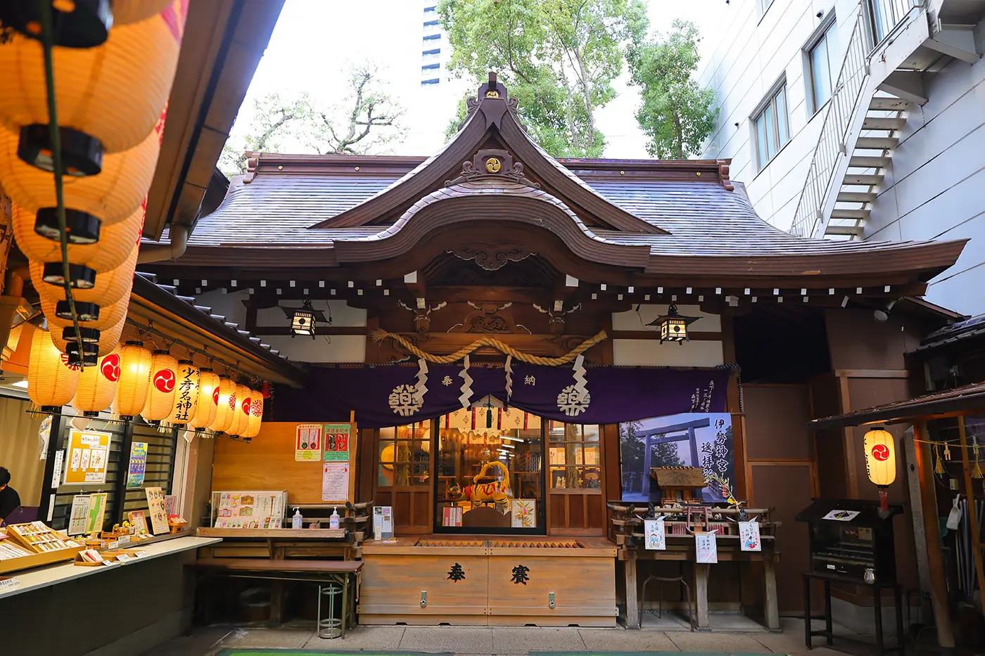 大阪の都心部である梅田に鎮座する露天(つゆのてん)神社は、病気平癒、商売繁盛、学問など、あらゆるご神徳を持つ神社。近松門左衛門の浄瑠璃『曾根崎心中』の舞台としても知られ、特に恋愛成就のパワースポットとして多くの参拝者が訪れています。