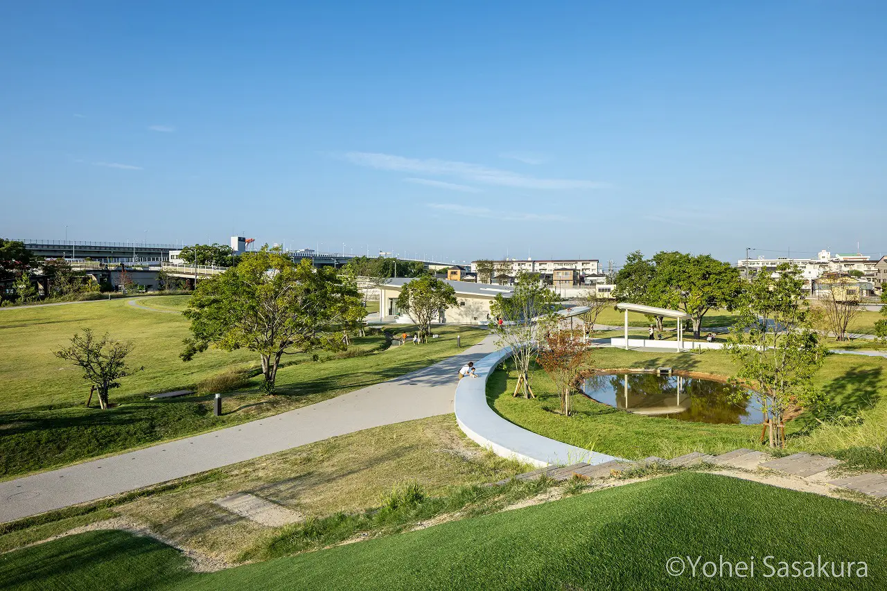 公園内は芝生の緑と青空が広がる開放的なロケーション。季節ごとに咲く草花やアクティビティを楽しむ子供たちの姿は写真映えし、SNSでも人気です。散策しながらお気に入りの風景を探すフォトウォークとしてもおすすめ。