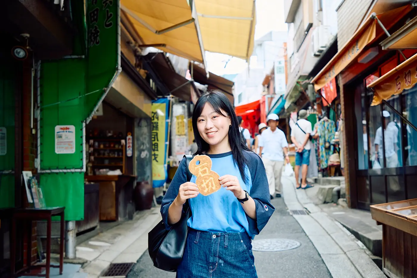 吃完午餐後,在連綿的參道上閒逛。沿著商業街前進的話,傳統的玩具店、烤煎餅店、小商店等,各種各樣的店鋪鱗次櫛比。